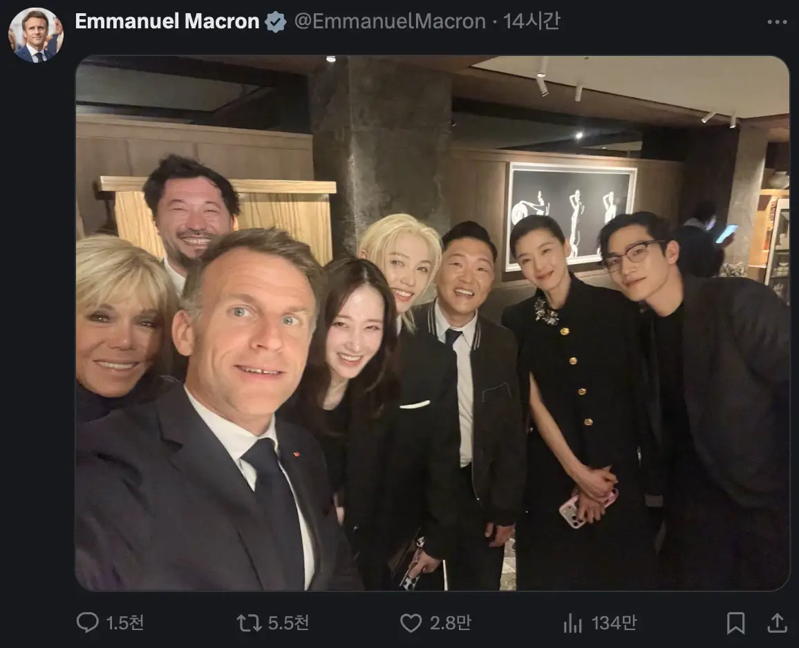 전지현, 마크롱 대통령 내외와 셀카…국빈 만찬서 포착