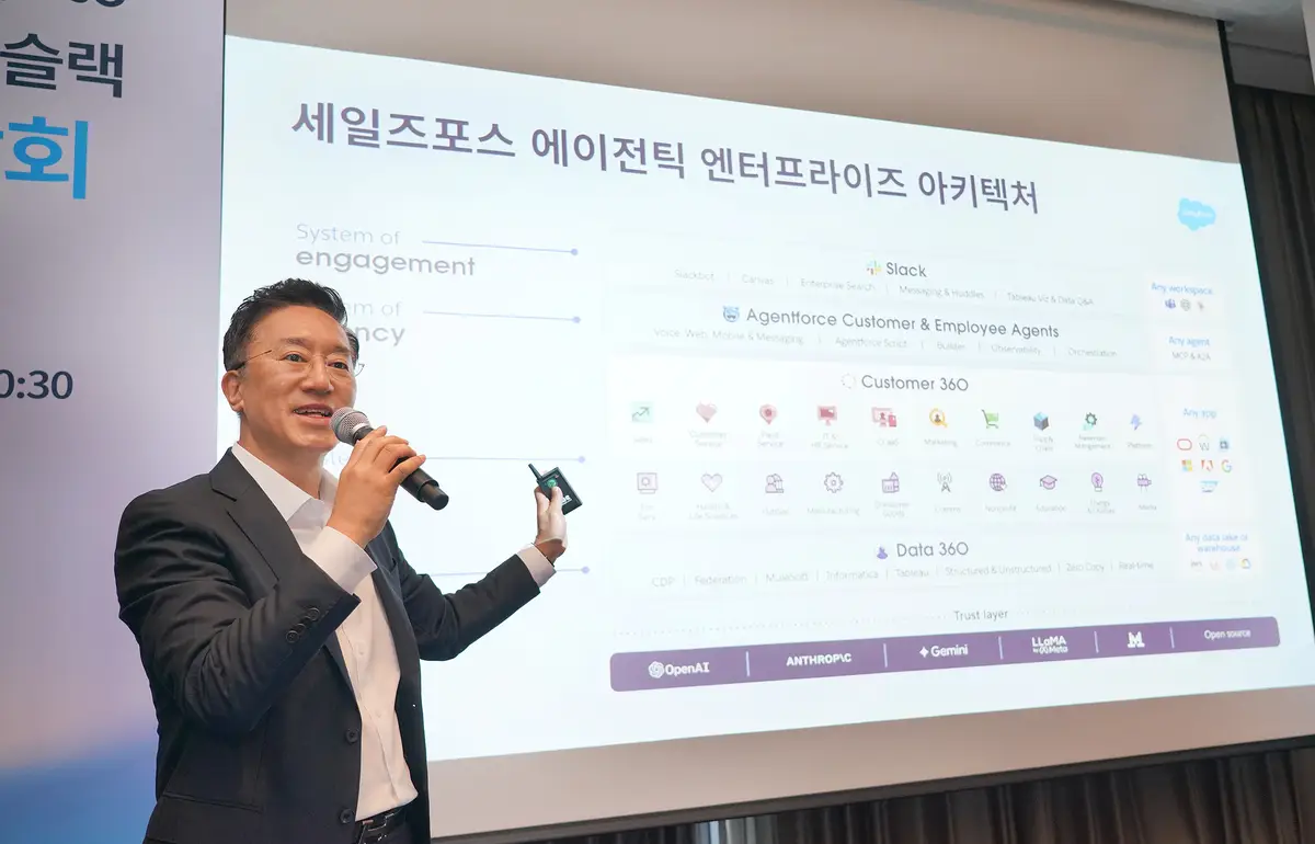 글로벌 1위 고객관리(CRM) 기업인 세일즈포스가 맞춤형 AI 비서인 ‘슬랙봇’을 선보이며 고객사들의 인공지능 전환(AX)에 박차를 가하겠다는 청사진을 공개했다.