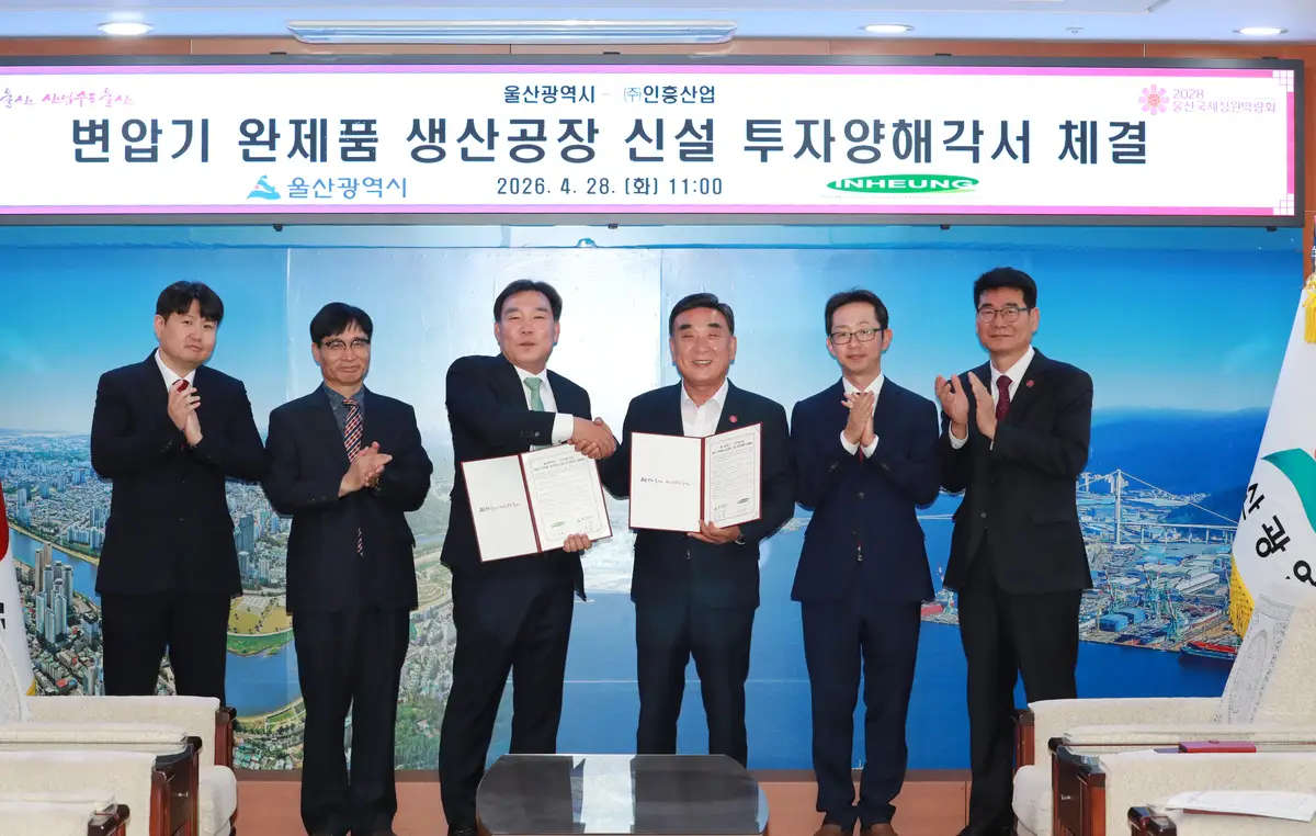 울산시와 인흥산업은 28일 시청에서 변압기 완제품 생산공장 신설 투자양해각서(MOU)를 체결했다.